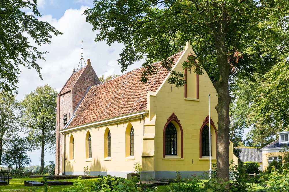The church owns a pulpit from 1660; touching are the women's heads that seem to carry the pulpit. That the Westernielandster church is so eccentrically located in relation to habitation has to do with the infamous Christmas flood of 1717 when the village was largely destroyed. Of the 50 houses, 35 were wiped off the map, with only four of the remaining houses found to be habitable. What was destroyed to the west of the church was not rebuilt and the church has stood on the outskirts of the village ever since. That Westernieland and its church enjoy national fame is because of the building that stands just north of the church: the presbytery. A well-known cabaret performer was born there on 30 August 1944.